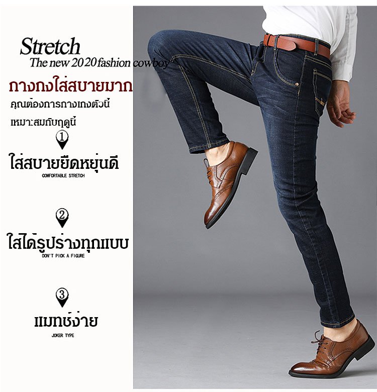กางเกงยีนส์ทรงกระบอกผู้ชายคุณภาพดี เนื้อผ้ายืดหยุ่น ใส่สบายไม่รัดแน่น สีไม่ตก ไม่เสียรูปทรง สไตล์ธุรกิจลำลอง รับประกันคุณภาพ คุ้มค่า 1 ตัว 899 บาท 2 ตัว 1299 บาท 3 ตัว 1499 บาท
